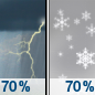 Temperature: 49°F Wind Speed: 6 to 10 mph Wind Direction: S Forecast: Rain likely before 11am, then showers and thunderstorms likely between 11am and 5pm, then a chance of rain and snow. Mostly cloudy, with a high near 49. |