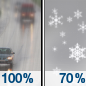 Temperature: 37°F Wind Speed: 13 to 16 mph Wind Direction: S Forecast: Rain and snow likely. Mostly cloudy, with a low around 37. Chance of precipitation is 70%. |