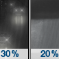 Temperature: 36°F Wind Speed: 5 mph Wind Direction: WSW Forecast: A chance of rain before 10pm, then scattered rain showers. Mostly cloudy, with a low around 36. West southwest wind around 5 mph. Chance of precipitation is 30%. |