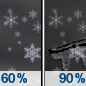 Temperature: 15°F Wind Speed: 6 to 12 mph Wind Direction: S Forecast: Snow likely after 7pm. Mostly cloudy, with a low around 15. South wind 6 to 12 mph, with gusts as high as 22 mph. Chance of precipitation is 70%. |