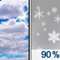 Temperature: 3°F Wind Speed: 6 to 9 mph Wind Direction: W Forecast: A slight chance of snow showers after 3am. Mostly cloudy, with a low around 3. Chance of precipitation is 20%. |