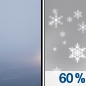 Temperature: 12°F Wind Speed: 7 mph Wind Direction: NW Forecast: A chance of snow. Mostly cloudy, with a low around 12. Chance of precipitation is 50%. |