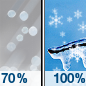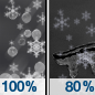 Temperature: 30°F Wind Speed: 7 mph Wind Direction: S Forecast: A chance of snow. Mostly cloudy, with a high near 30. Chance of precipitation is 50%. |