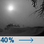 Temperature: -18°F Wind Speed: 10 to 15 mph Wind Direction: SW Forecast: A slight chance of snow after 3am. Mostly cloudy, with a low around -18. |