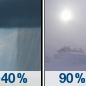 Temperature: 18°F Wind Speed: 7 to 18 mph Wind Direction: WNW Forecast: Snow showers and patchy blowing snow before 5am. Partly cloudy. Low around 18, with temperatures rising to around 20 overnight. West northwest wind 7 to 18 mph. Chance of precipitation is 90%. New snow accumulation of 2 to 4 inches possible. |