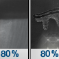 Temperature: 47°F Wind Speed: 7 to 13 mph Wind Direction: S Forecast: Rain showers. Mostly cloudy, with a high near 47. Chance of precipitation is 80%. |