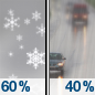 Temperature: 26°F Wind Speed: 0 to 10 mph Wind Direction: SW Forecast: Snow likely after 1am. Cloudy, with a low around 26. Southwest wind 0 to 10 mph. Chance of precipitation is 60%. New snow accumulation of less than half an inch possible. |