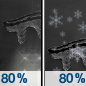 Temperature: 27°F Wind Speed: 6 to 9 mph Wind Direction: N Forecast: Rain and patchy fog before 10pm, then freezing rain and rain and patchy fog between 10pm and 4am, then snow likely and freezing rain likely. Cloudy, with a low around 27. North wind 6 to 9 mph. Chance of precipitation is 80%. New snow accumulation of less than half an inch possible. Little or no ice accumulation expected. |