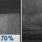Temperature: 34°F Wind Speed: 5 to 10 mph Wind Direction: WNW Forecast: Rain showers likely before midnight. Cloudy, with a low around 34. West northwest wind 5 to 10 mph. Chance of precipitation is 70%. |