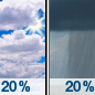 Temperature: 73°F Wind Speed: 0 to 5 mph Wind Direction: S Forecast: A slight chance of rain showers after 4pm. Partly sunny, with a high near 73. |