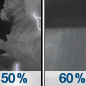 Temperature: 43°F Wind Speed: 1 to 6 mph Wind Direction: SSW Forecast: A chance of showers and thunderstorms before midnight, then a chance of rain showers and patchy fog between midnight and 2am, then areas of fog and a chance of rain showers between 2am and 3am, then rain showers likely and areas of fog between 3am and 5am, then areas of fog and a chance of rain showers. Mostly cloudy, with a low around 43. South southwest wind 1 to 6 mph. Chance of precipitation is 60%. New rainfall amounts less than a tenth of an inch possible. |