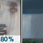 Temperature: 44°F Wind Speed: 5 to 10 mph Wind Direction: N Forecast: Rain before noon, then a chance of rain showers between noon and 1pm. Cloudy. High near 44, with temperatures falling to around 41 in the afternoon. North wind 5 to 10 mph. Chance of precipitation is 80%. New rainfall amounts between a tenth and quarter of an inch possible. |