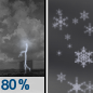 Temperature: 26°F Wind Speed: 12 to 16 mph Wind Direction: W Forecast: Showers and thunderstorms before midnight, then a chance of rain and snow showers. Mostly cloudy, with a low around 26. West wind 12 to 16 mph, with gusts as high as 24 mph. Chance of precipitation is 80%. New rainfall amounts between a quarter and half of an inch possible. |