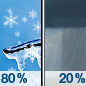 Temperature: 35°F Wind Speed: 10 mph Wind Direction: NE Forecast: Snow showers likely before 2pm. Mostly cloudy, with a high near 35. Chance of precipitation is 60%. New snow accumulation of less than one inch possible. |