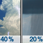 Forecast: A chance of snow before 7pm. Mostly cloudy, with a low around 19. Chance of precipitation is 50%.