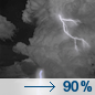 Temperature: 53°F Wind Speed: 15 mph Wind Direction: SSW Forecast: A slight chance of showers and thunderstorms between 7pm and 10pm, then showers and thunderstorms. Mostly cloudy. Low around 53, with temperatures rising to around 59 overnight. South southwest wind around 15 mph, with gusts as high as 30 mph. Chance of precipitation is 90%. New rainfall amounts between a tenth and quarter of an inch possible. |