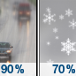 Temperature: 43°F Wind Speed: 20 mph Wind Direction: SW Forecast: Rain before noon, then rain and snow likely. Mostly cloudy, with a high near 43. Southwest wind around 20 mph, with gusts as high as 35 mph. Chance of precipitation is 90%. |