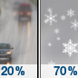 Temperature: 46°F Wind Speed: 5 to 16 mph Wind Direction: NW Forecast: A chance of rain between 11am and 4pm, then snow likely. Mostly cloudy. High near 46, with temperatures falling to around 33 in the afternoon. Northwest wind 5 to 16 mph, with gusts as high as 24 mph. Chance of precipitation is 70%. New snow accumulation of less than half an inch possible. |