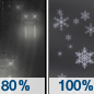 Temperature: 23°F Wind Speed: 13 to 16 mph Wind Direction: S Forecast: Rain before 4am, then a chance of snow between 4am and 5am, then a chance of rain and snow. Cloudy. Low around 23, with temperatures rising to around 37 overnight. South wind 13 to 16 mph, with gusts as high as 29 mph. Chance of precipitation is 100%. Little or no snow accumulation expected. Little or no ice accumulation expected. |