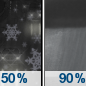 Temperature: 34°F Wind Speed: 5 mph Wind Direction: W Forecast: Rain showers likely before 9pm. Mostly cloudy, with a low around 34. Chance of precipitation is 60%. |