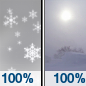 Temperature: 26°F Wind Speed: 0 to 10 mph Wind Direction: ESE Forecast: Snow likely after 10am. Cloudy, with a high near 26. East southeast wind 0 to 10 mph. Chance of precipitation is 70%. New snow accumulation of 1 to 3 inches possible. |