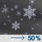 Temperature: 13°F Wind Speed: 2 to 6 mph Wind Direction: SSE Forecast: A chance of snow. Cloudy, with a low around 13. Chance of precipitation is 40%. |