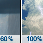 Temperature: 41°F Wind Speed: 16 to 20 mph Wind Direction: W Forecast: Showers and thunderstorms. Mostly cloudy, with a low around 41. West wind 16 to 20 mph, with gusts as high as 32 mph. Chance of precipitation is 100%. New rainfall amounts between a quarter and half of an inch possible. |