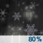 Temperature: 32°F Wind Speed: 5 to 13 mph Wind Direction: SE Forecast: Rain and a slight chance of sleet. Cloudy, with a low around 32. Chance of precipitation is 80%. |