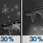 Temperature: 27°F Wind Speed: 6 mph Wind Direction: S Forecast: A slight chance of rain and snow before 7pm, then a chance of freezing rain between 7pm and 1am, then a chance of rain. Mostly cloudy, with a low around 27. Chance of precipitation is 30%. |