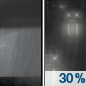 Temperature: 30°F Wind Speed: 10 mph Wind Direction: WNW Forecast: A chance of rain before 3am, then a chance of rain and snow. Mostly cloudy, with a low around 30. West northwest wind around 10 mph. Chance of precipitation is 30%. |