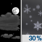 Temperature: 25°F Wind Speed: 2 to 6 mph Wind Direction: SSW Forecast: A chance of rain and snow after 5am. Partly cloudy, with a low around 25. South southwest wind 2 to 6 mph. Chance of precipitation is 30%. |
