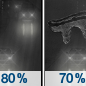 Forecast: Rain before 5am, then a chance of freezing rain. Cloudy, with a low around 30. North wind 3 to 8 mph. Chance of precipitation is 80%. New rainfall amounts between a quarter and half of an inch possible.