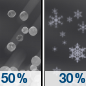 |  | Temperature: 33°F Wind Speed: 10 to 15 mph Wind Direction: NNW Forecast: A chance of sleet and a chance of rain and snow before 7pm, then a chance of rain and snow between 7pm and 8pm, then a chance of rain and snow between 8pm and 10pm, then a chance of rain and snow between 10pm and 11pm, then a chance of rain and snow. Cloudy, with a low around 33. North northwest wind 10 to 15 mph. Chance of precipitation is 50%. New rainfall amounts less than a tenth of an inch possible. |