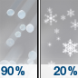 Temperature: 46°F Wind Speed: 8 to 14 mph Wind Direction: NW Forecast: Rain showers and a slight chance of sleet before 8am, then rain and snow showers likely. Mostly cloudy, with a high near 46. Northwest wind 8 to 14 mph. Chance of precipitation is 90%. New rainfall amounts between a quarter and half of an inch possible. |