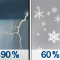 Temperature: 52°F Wind Speed: 15 to 20 mph Wind Direction: SW Forecast: Rain showers before 8am, then showers and thunderstorms likely between 8am and 2pm, then a slight chance of rain and snow showers. Mostly cloudy, with a high near 52. Southwest wind 15 to 20 mph, with gusts as high as 35 mph. Chance of precipitation is 90%. |