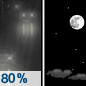 Temperature: 57°F Wind Speed: 8 to 12 mph Wind Direction: S Forecast: Rain showers likely. Mostly cloudy, with a low around 57. Chance of precipitation is 70%. |