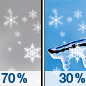 Temperature: 23°F Wind Speed: 0 to 5 mph Wind Direction: W Forecast: A chance of snow after 11pm. Cloudy, with a low around 23. West wind 0 to 5 mph. Chance of precipitation is 30%. New snow accumulation of less than half an inch possible. |