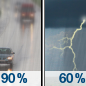 Temperature: 51°F Wind Speed: 5 to 9 mph Wind Direction: SSW Forecast: Rain before noon, then showers and thunderstorms likely. Mostly cloudy. High near 51, with temperatures falling to around 49 in the afternoon. South southwest wind 5 to 9 mph. Chance of precipitation is 90%. |