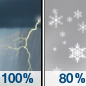 Temperature: 56°F Wind Speed: 13 to 17 mph Wind Direction: SW Forecast: Rain showers before 7am, then showers and thunderstorms between 7am and 4pm, then a slight chance of snow showers. Mostly cloudy. High near 56, with temperatures falling to around 35 in the afternoon. Southwest wind 13 to 17 mph, with gusts as high as 38 mph. Chance of precipitation is 100%. New rainfall amounts between 1 and 2 inches possible. |