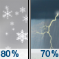 Temperature: 30°F Wind Speed: 2 to 6 mph Wind Direction: WNW Forecast: Showers and thunderstorms likely before midnight, then a chance of rain and snow showers between midnight and 3am, then patchy frost and a chance of rain and snow showers. Mostly cloudy. Low around 30, with temperatures rising to around 33 overnight. West northwest wind 2 to 6 mph. Chance of precipitation is 70%. New snow accumulation of less than half an inch possible. |