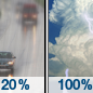 Temperature: 27°F Wind Speed: 5 to 10 mph Wind Direction: NNW Forecast: Rain and snow before 7pm, then rain and snow likely between 7pm and 8pm, then a chance of rain and a slight chance of sleet between 8pm and 9pm, then a chance of rain and snow between 9pm and 10pm. Mostly cloudy, with a low around 27. North northwest wind 5 to 10 mph. Chance of precipitation is 90%. New rainfall amounts between a quarter and half of an inch possible. |