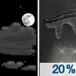 Temperature: 30°F Wind Speed: 2 mph Wind Direction: SSW Forecast: A slight chance of freezing rain between 3am and 4am, then a slight chance of rain. Partly cloudy, with a low around 30. Chance of precipitation is 20%. |
