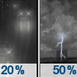 Temperature: 56°F Wind Speed: 8 mph Wind Direction: W Forecast: A slight chance of rain between 8pm and 2am, then a chance of rain and a slight chance of thunderstorms. Mostly cloudy, with a low around 56. West wind around 8 mph, with gusts as high as 18 mph. Chance of precipitation is 50%. New rainfall amounts less than a tenth of an inch possible. |
