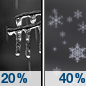 Temperature: 29°F Wind Speed: 0 to 5 mph Wind Direction: NE Forecast: Patchy freezing fog and a slight chance of freezing rain before midnight, then patchy freezing fog and a slight chance of rain and snow between midnight and 3am, then a chance of snow and patchy freezing fog. Mostly cloudy, with a low around 29. Northeast wind 0 to 5 mph. Chance of precipitation is 40%. |