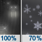 Temperature: 31°F Wind Speed: 10 to 15 mph Wind Direction: N Forecast: Rain before midnight, then rain and snow likely. Cloudy. Low around 31, with temperatures rising to around 33 overnight. North wind 10 to 15 mph, with gusts as high as 25 mph. Chance of precipitation is 100%. New rainfall amounts between a quarter and half of an inch possible. |