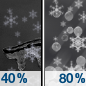 Temperature: 40°F Wind Speed: 5 mph Wind Direction: N Forecast: A chance of snow before 9am, then a chance of rain. Mostly cloudy, with a high near 40. Chance of precipitation is 50%. |
