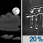 Temperature: 25°F Wind Speed: 10 mph Wind Direction: W Forecast: A slight chance of freezing rain after midnight. Partly cloudy, with a low around 25. Chance of precipitation is 20%. |