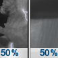 Temperature: 54°F Wind Speed: 5 to 10 mph Wind Direction: S Forecast: A chance of rain and a slight chance of thunderstorms before 8pm, then a chance of rain showers. Mostly cloudy, with a low around 54. Chance of precipitation is 50%. |