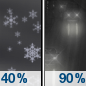 Temperature: 27°F Wind Speed: 0 to 5 mph Wind Direction: W Forecast: A chance of snow after 8am. Partly sunny, with a high near 27. |