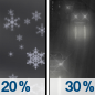 Temperature: 29°F Wind Speed: 7 mph Wind Direction: SW Forecast: A slight chance of rain between 8pm and 10pm, then a slight chance of snow between 10pm and 11pm, then a chance of rain. Mostly cloudy, with a low around 29. Southwest wind around 7 mph. Chance of precipitation is 30%. |